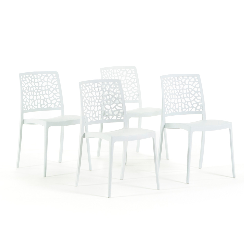 RATTATAN 6er-Set stapelbare Stühle aus Polypropylen mit Glasfasern für Außenbereich und Garten, Bar und Restaurant, Küche modernes Design - MALIKA - Weiß