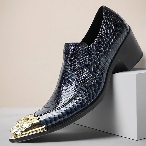 scarpe slip-on da uomo in pelle di serpente blu con dettagli dorati, scarpe formali di lusso per matrimoni, perfette per lo sposo e i testimoni, calzature da matrimonio eleganti e alla moda