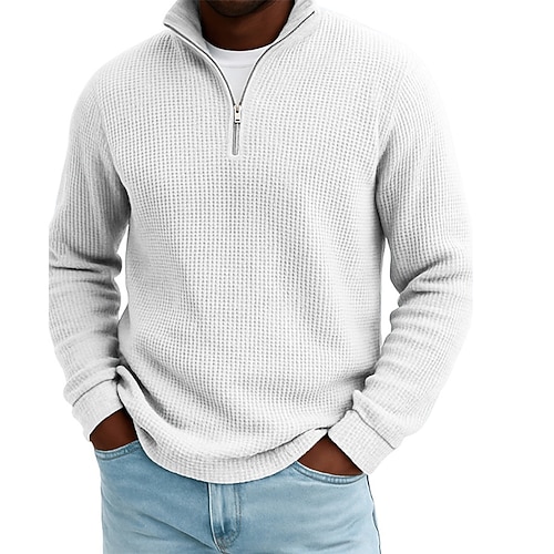 Per uomo Magliette Polo a Nido d'Ape Testurizzato All'aperto Casual Zip a un quarto Manica Lunga Moda Moderno Tinta unica Testurizzato Lavorato a maglia Autunno Primavera Autunno Autunno Inverno