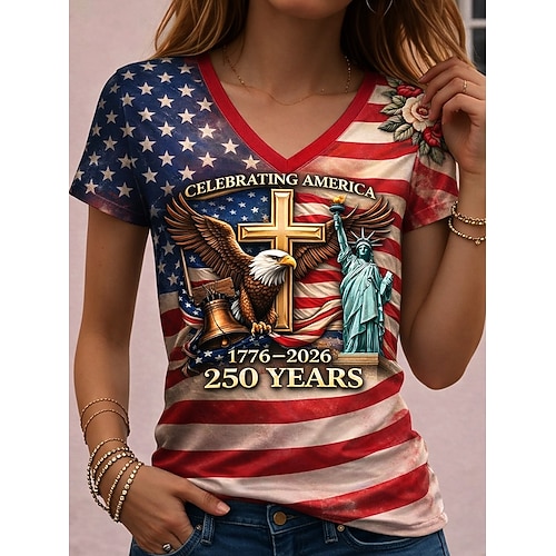 Camicia Patriotica Americana 250° da Donna Grafica Bandiera USA Vintage Tropicale Giornata Tops Regolari Giornata Stampa Rossa Primavera
