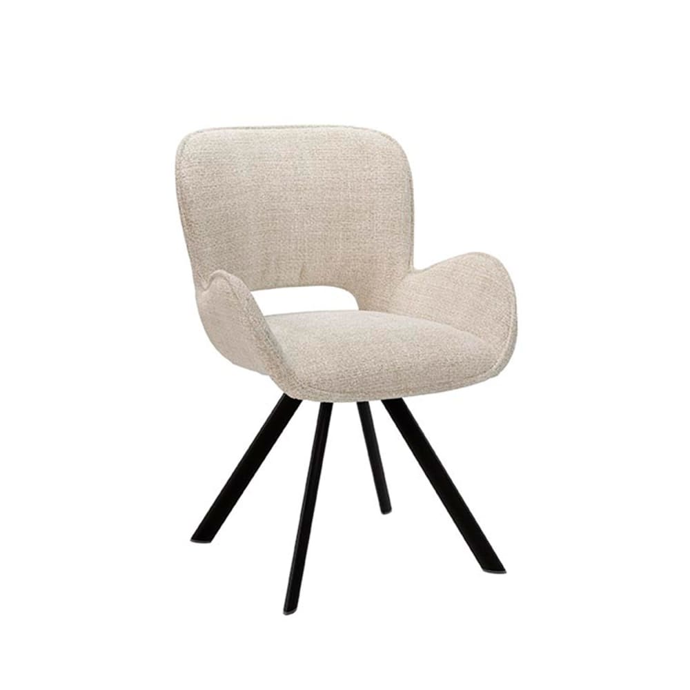 Sedia elegante con braccioli bassi imbottiti beige