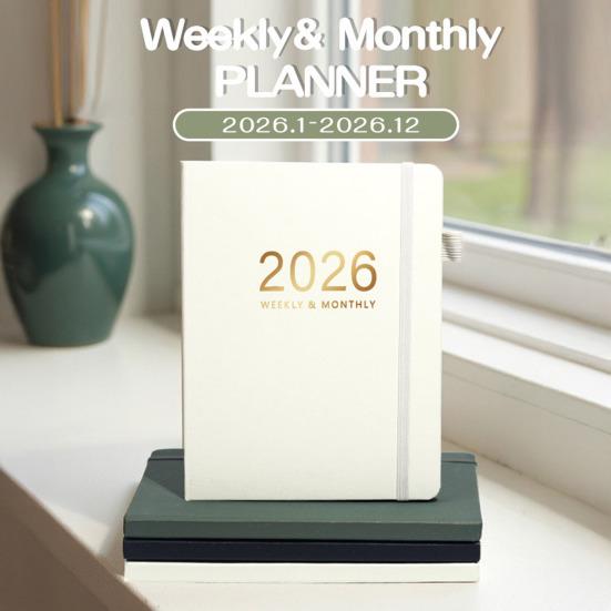 2026 Planer A5 Hårdpärm Daglig Organiserare med 12-Månaderskalender Målspårning Och Elastisk Stängning Produktiv Daglig Agenda Bok för Studenter grön