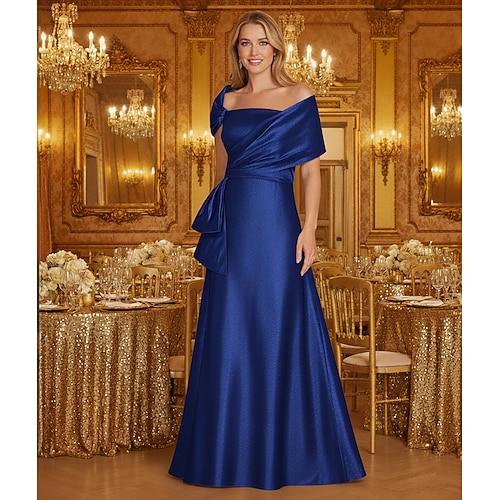 Linea ad A Lunghezza al pavimento Abito da Sera Da principessa Abito formale Elegante Scintillante Setoso Senza Maniche Senza Spalle Matrimonio Formale Tasca Raso Elasticizzato con Fiocco/Fiocchi