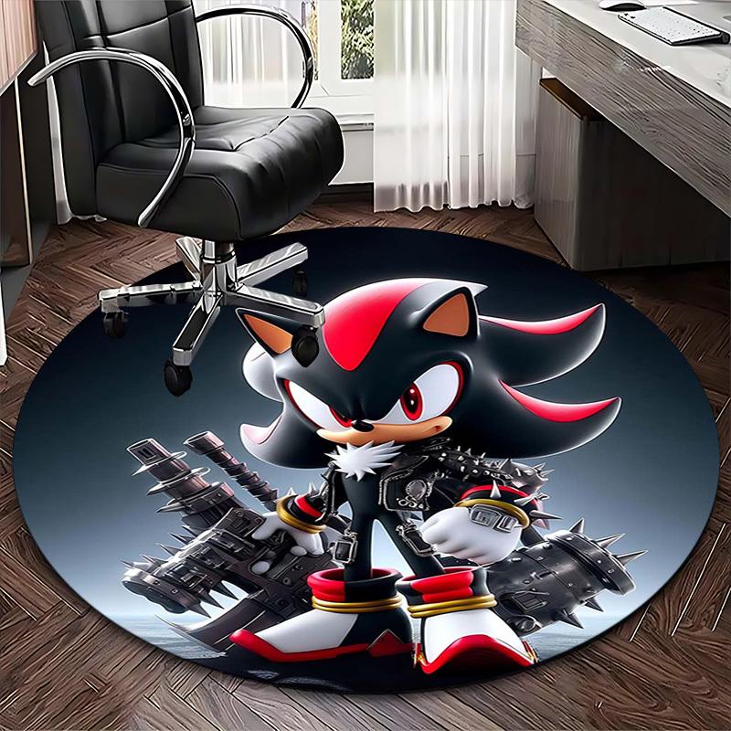 1pc Shadow the Hedgehog Anime Design Round Carpet - Office Chair Mat, Non-Slip Rug for Home Decor