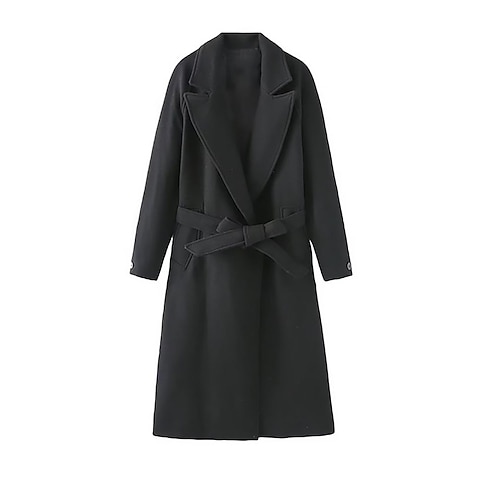 Per donna Cappotto Ufficio Strada Shopping Autunno Inverno Lungo Cappotto Standard Tenere al caldo Traspirante Contemporaneo Moda Da cerimonia Giacca Manica lunga Liscio Con tasche Con cintura Nero