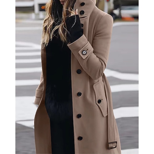 Per donna Cappotto Invernale Cappotto Caldo Confortevole Tasca Bottoni Con cintura Elegante Casual Semplice Vacanza Streetwear Casuale Abbigliamento quotidiano Lungo Collo ripiegato Vestibilit