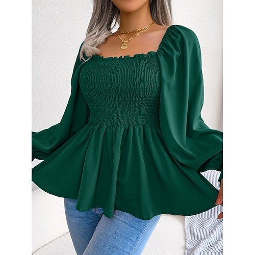 Per donna Blusa Top in chiffon Arricciato Patchwork Semplice Elegante Classico Moderno Manica Lunga Collo quadrato Top Regolari Quotidiano Ferie Uscire Blu Nero Bianco Vino Marrone Estate Primavera