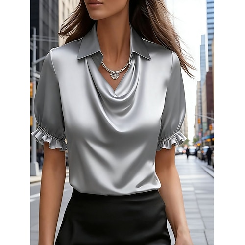 Per donna Camicia Blusa Top con collo a cappuccio Semplice Elegante Essenziale Classico Manica Corta Scollo a Cascata Top Regolari Quotidiano Ferie Uscire Nero Bianco Champagne Giallo Vino Estate