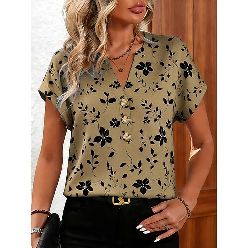 Per donna Maglietta Stampato Grafico Piante Vintage Elegante Casual Manica Corta Collo a V Top Regolari Quotidiano Uscire Weekend Blu Viola Verde Cachi Estate Primavera