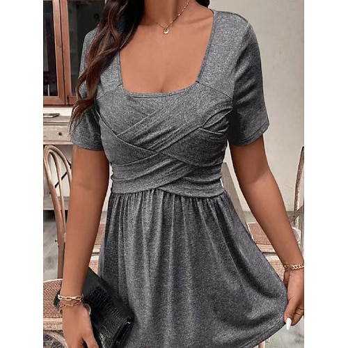 Per donna Maglietta Semplice Moda Elegante Classico Manica Corta Collo quadrato Top Regolari Quotidiano Uscire Weekend Nero Verde chiaro Vino Viola chiaro Marrone Estate Primavera