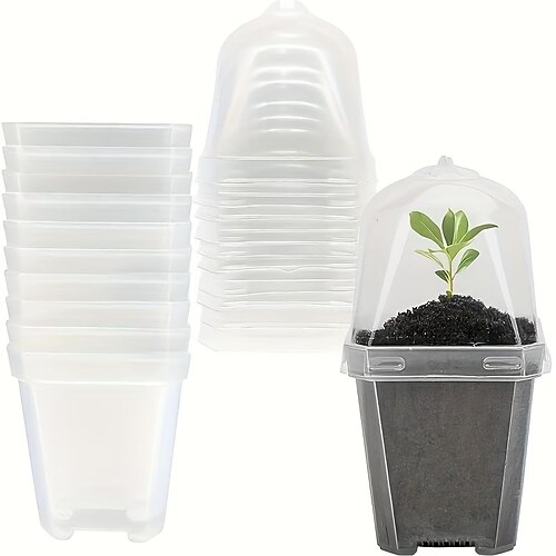 10 pezzi di vasi trasparenti per piantine con cupole di umidità, contenitori quadrati in plastica con coperchi e basi, traspiranti e termoisolanti, adatti per piantine, verdure, piante grasse
