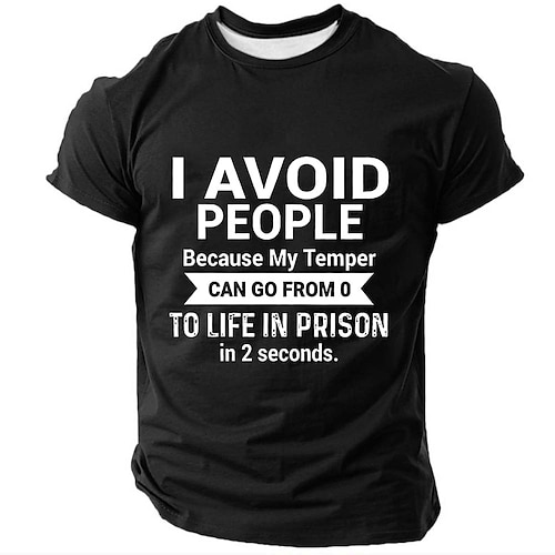 Maglietta divertente da uomo Evito le persone perché il mio carattere può passare da 0 a una vita in prigione in 2 secondi Magliette grafiche con umorismo sarcastico Regalo originale per lui