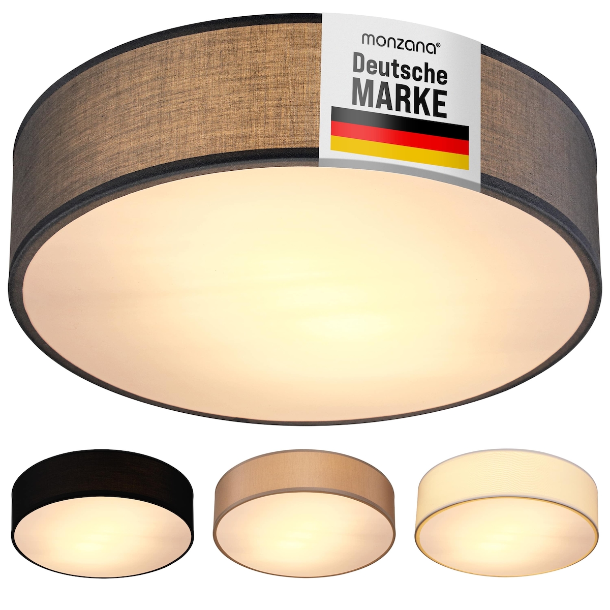 Monzana Deckenlampe Grau 38cm Stoff 2-flammig E27 Deckenleuchte Wohnzimmer Schlafzimmer Stoffdeckenlampe