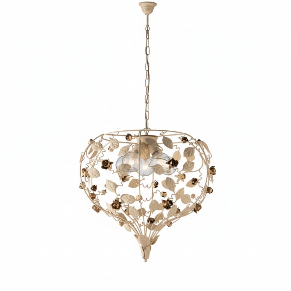 Lampadario Shabby 5 Luci E27 Metallo Avorio Oro