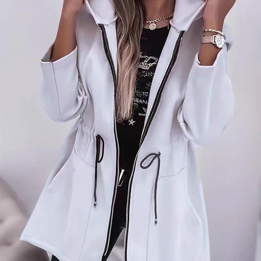 Europäisch-amerikanische Damen-Freizeitjacke mit Reißverschluss und Kapuze, lockeres, tailliertes Design cm weiß