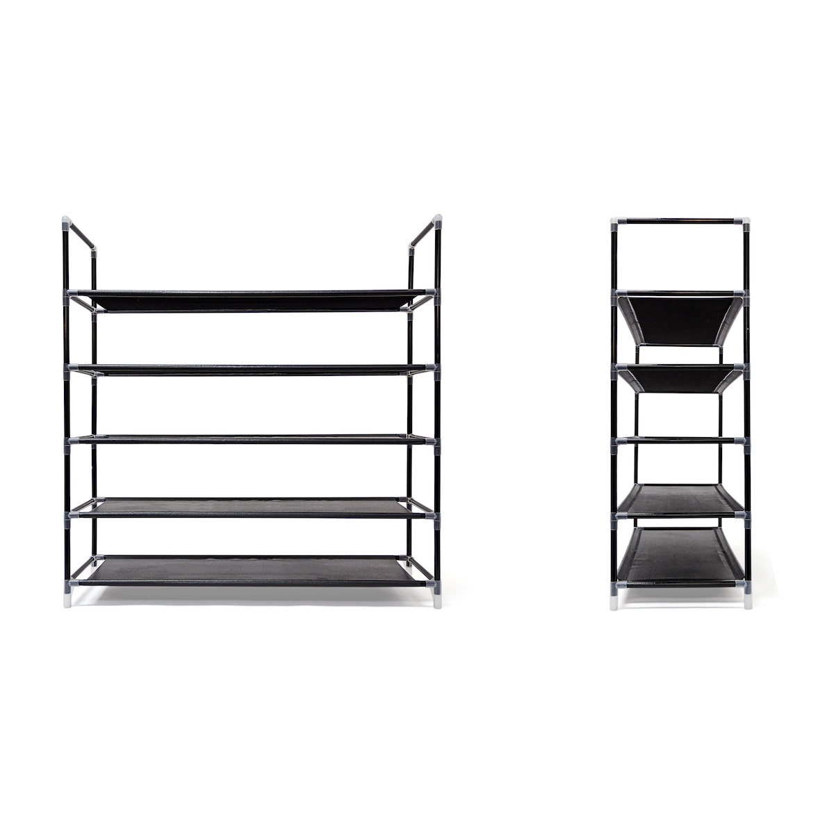 Relaxdays Schuhregal Stecksystem, 5 Ebenen, Schuhablage für 20 Paar Schuhe, Metall & Stoff, HBT 90,5x87x29,5 cm, schwarz