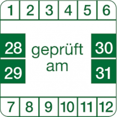 Dreifke® Prüfplakette weiß/grün, geprüft, ab 2028 - 30x30 mm Folie selbstklebend, 10 St