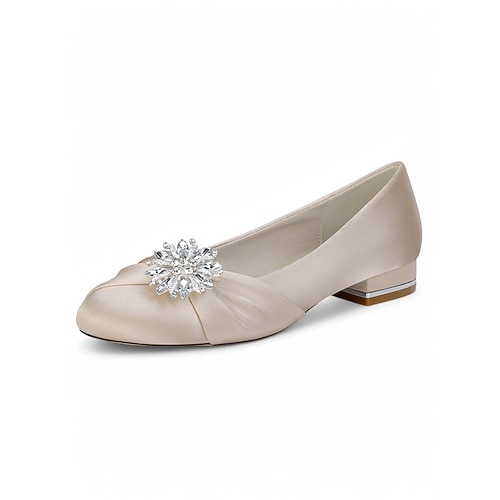 Per donna Scarpe da Sposa Matrimonio Ballerine da Sposa Cristallo Tacco basso Punta Tonda Moda Raso Mocassino Argento Nero Bianco