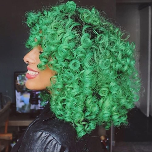 Parrucche Verdi di San Patrizio 2026 Parrucca Corto Riccia Morbida con Frangia Parrucca Sintetica Afro Kinky