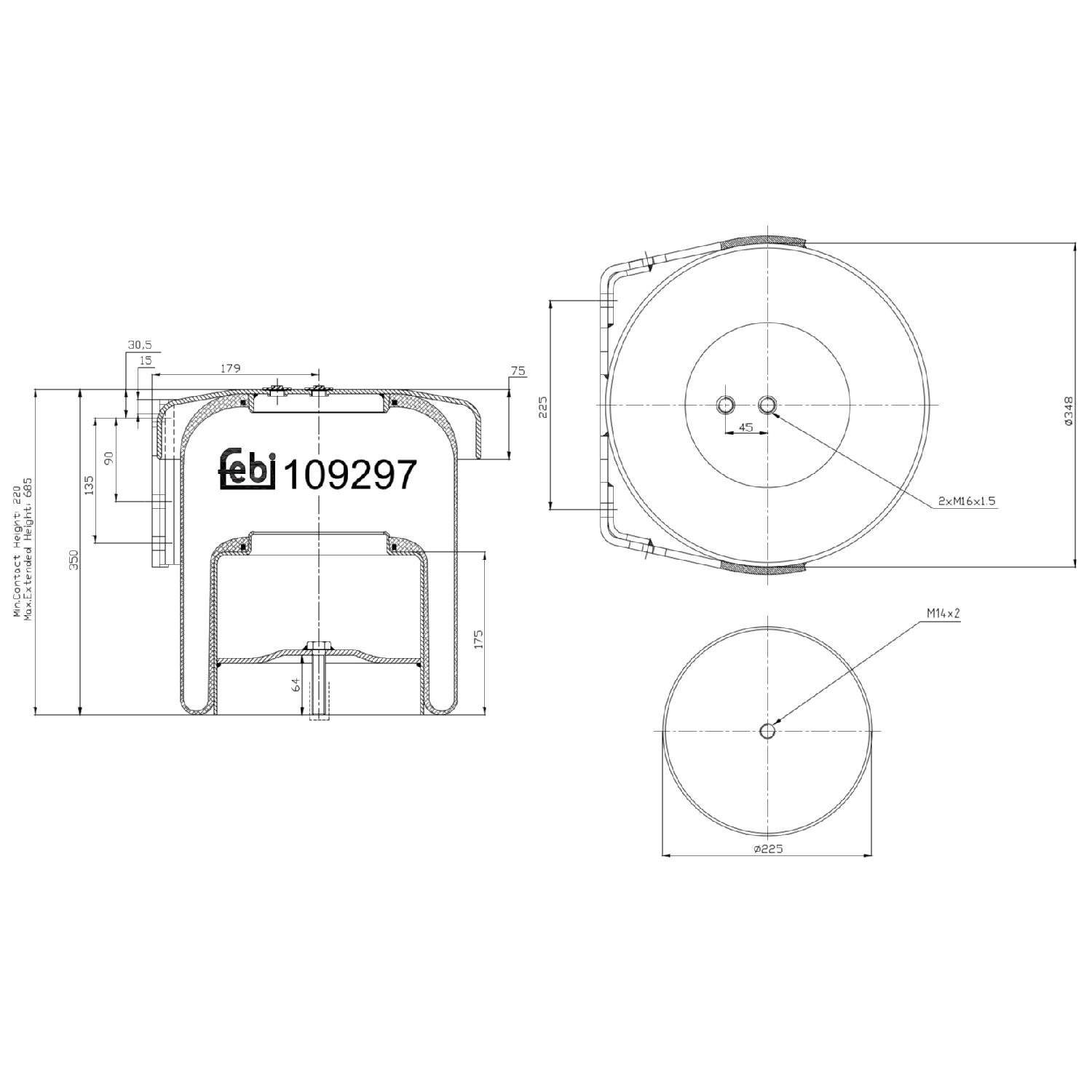 FEBI BILSTEIN Federbalg, Luftfederung 109297 Universal hinten rechts links mit Kolben 347mm für IVECO 041026312 08139067 008139067