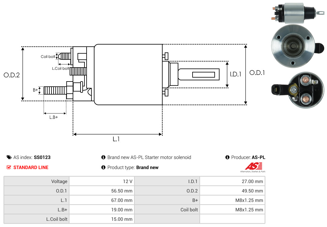 AS-PL Magnetschalter, Starter SS0003P 8997805,9817926,9926095 9930715,9955125,9959560