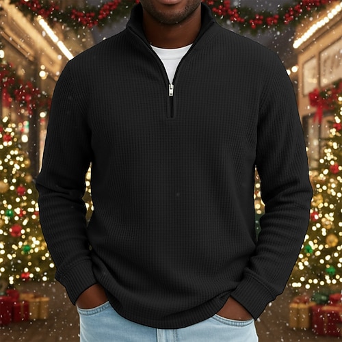 Per uomo Magliette Polo a Nido d'Ape Polo con zip Sport all'Aperto Casuale Colletto Mao Zip a un quarto Manica Lunga Moda Moderno Tinta unica Lavorato a maglia Autunno Primavera Autunno Vestibilit