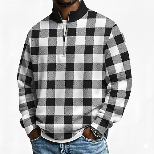 Per uomo A quadri Geometrico Polo Manica Lunga Colletto Mao Athleisure Vacanza Athleisure Casual Quotidiano Stampa 3D Primavera Autunno Inverno Blu Nero Arancione