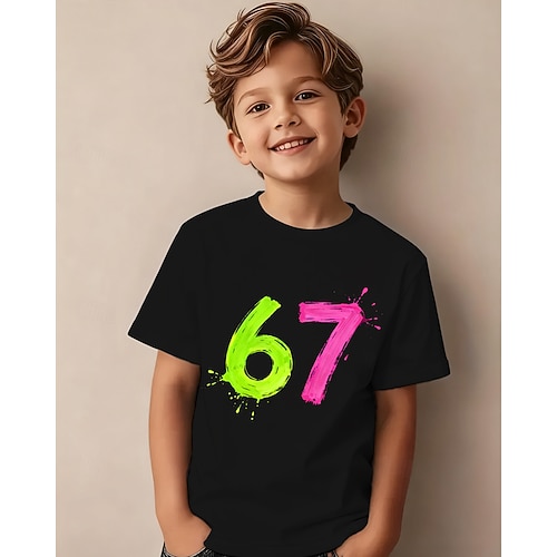 Cotone Bambini Ragazzi Nero Bianco Grafico Gergo divertente 67 Maglietta Blusa Girocollo Manica Corta All'aperto Abbigliamento Quotidiano Moda Streetwear Designer Stampa Estate