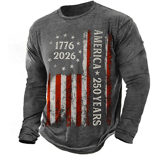 250° anniversario dell'America Per uomo 250° anniversario degli Stati Uniti Maglietta Manica Lunga maglietta Stampa 3D Girocollo Camicia Quotidiano Casual Quotidiano Viaggio Feste Blu Nero Verde