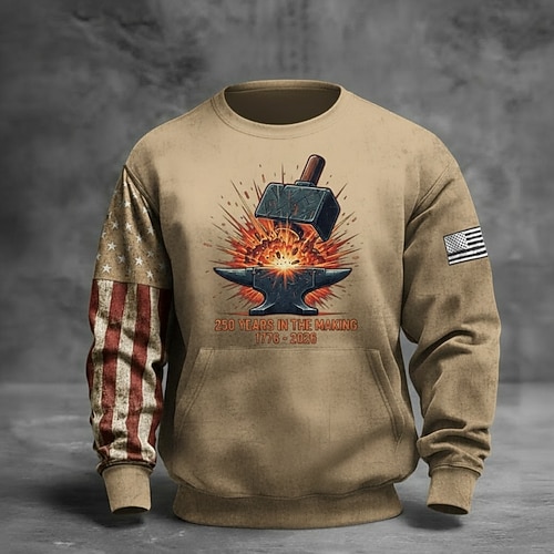 250° anniversario dell'America Per uomo Grafico Bandiera Felpa Moda Quotidiano Casual Girocollo Abbigliamento casual alla moda Uscire Nero Cachi Stampa Primavera Autunno progettista S M L XL XXL XXXL