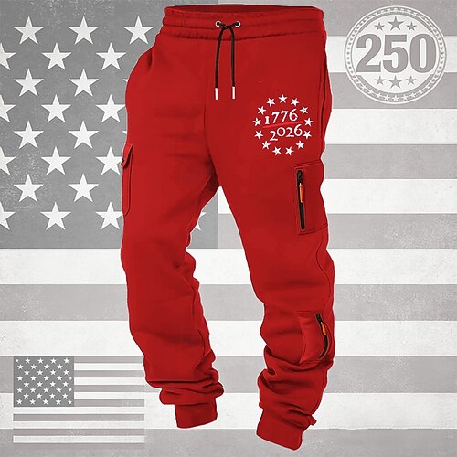 Per uomo Pantaloni da Tuta Cargo Pantaloni da tuta Joggers Pantaloni Coulisse Tasca Elastico in vita Stella Comodità Traspirante Quotidiano All'aperto 250° anniversario dell'America Vacanza Moda Nero