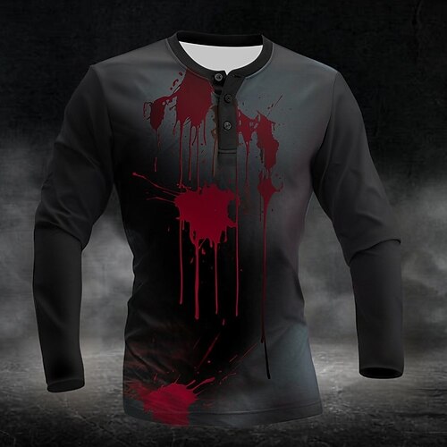 Camicia Grafica da Uomo Macchie di Sangue Camicia Henley Maniche Lunghe Moda Carina Quotidiana Casual Vacanza Primavera Autunno Primavera e Autunno Nera Henley Henley T-Shirt
