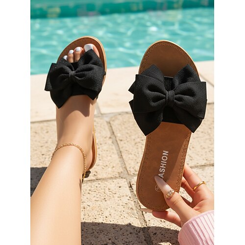 sandali bassi comodi con fiocco bianco da donna: eleganti calzature estive per la spiaggia, la piscina e l'uso quotidiano