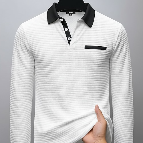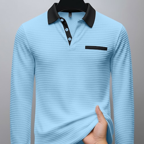 Per uomo Magliette Polo a Nido d'Ape Testurizzato Formale Affari Colletto Polo a Coste Manica Lunga Moda Tinta unica Tasca Bottoni Primavera Autunno Blu Bianco Grigio Magliette Polo a Nido d'Ape