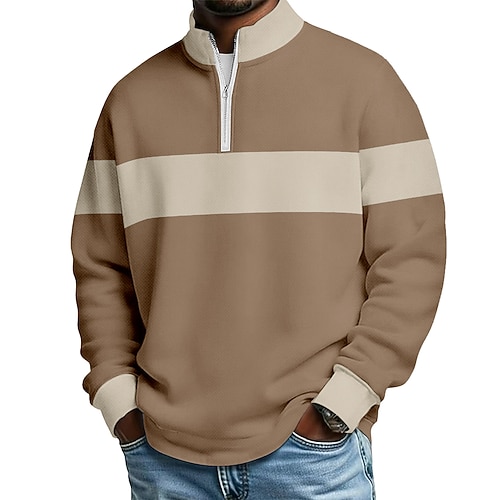 Per uomo A righe Polo con zip Manica Lunga Magliette polo Colletto alla coreana Casual Scuola Athleisure Ferie Abbigliamento quotidiano Stampa 3D Polo con cerniera a un quarto Primavera Autunno Blu