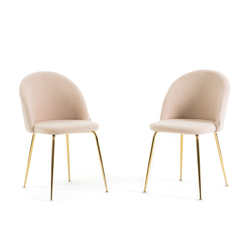 RATTATAN Set aus 2 Stühlen aus Teddystoff für den Innenbereich,mit Metallbeinen,gepolstert für Küche,Esszimmer,Bar oder Restaurant –Sara Teddy–Ecru/Gold