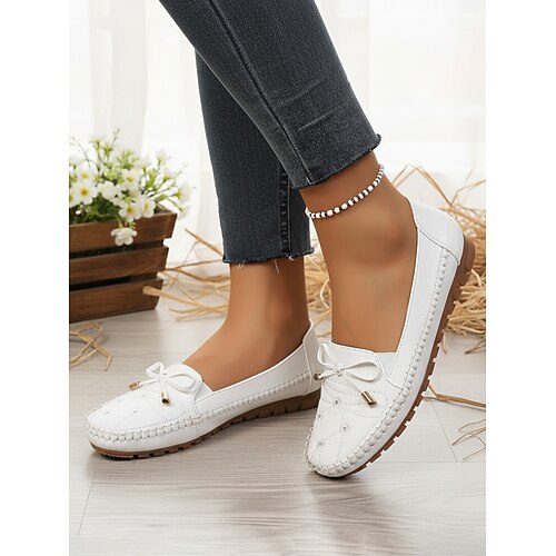 Per donna Scarpe da ginnastica scarpe bianche Scarpe bianche Taglie forti Scarpe da ginnastica senza lacci Esterno Giornaliero Tinta unica Piatto Punta tonda Essenziale Informale minimalismo Footing