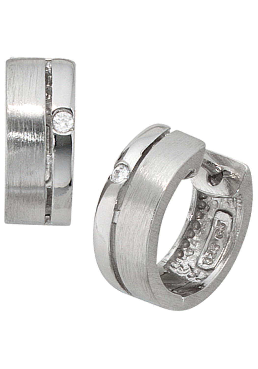 Paar Creolen JOBO, silber (silber 925), Ohrringe, Damen, Silber 925 (Sterlingsilber), rund 925 Silber mit Zirkonia
