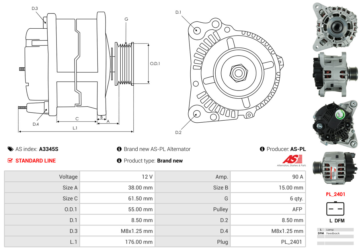 AS-PL Generator A3345S 12V 90A für RENAULT NISSAN 23100-5850 231004527R 8200810614
