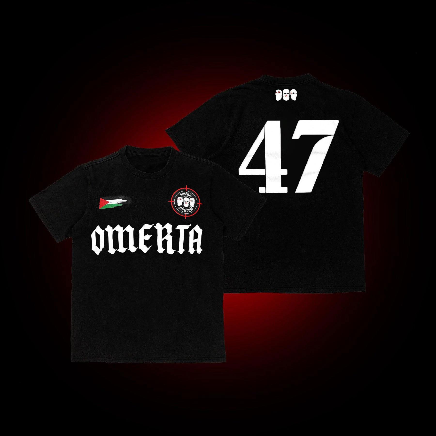 Omerta 47 Boxen Fan Print Trikot Reines Baumwoll-T-Shirt Herren Locker Rundhals Kurzarm Bequem Atmungsaktiv Damen Herren Kleidung cm schwarz