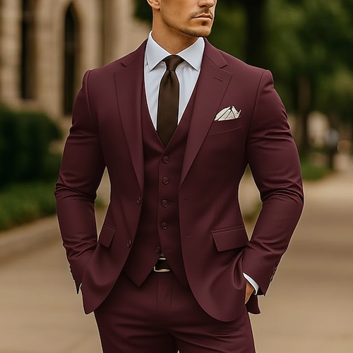 Uomo Casuale Semi-Formale Abiti da lavoro Bavero classico Nero Borgogna Quotidiano Affari Tinta unita Vestibilità su misura 3 pezzi Monopetto Due Bottoni