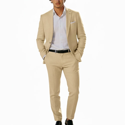 Uomo Affari Matrimonio Completi in Lino Bavero classico Bianco Rosa Formale Tinta unita Vestibilità su misura 2 pezzi Monopetto Due Bottoni