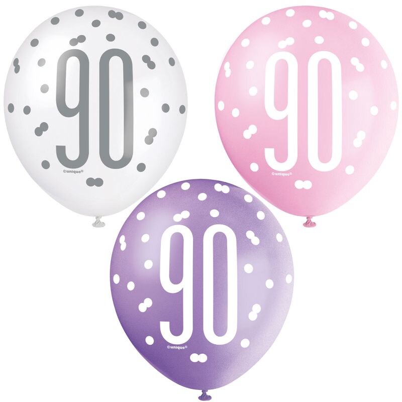 6 Luftballons rosa & silber Zahl 90