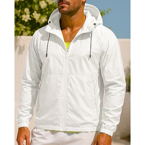 Per uomo Giacca con cappuccio Giacca sportiva con tasche Manica Lunga Top Athleisure Autunno Tinta unita Protezione Solare Leggero All'aperto Viaggio Sportivo abbigliamento sportivo Abbigliamento