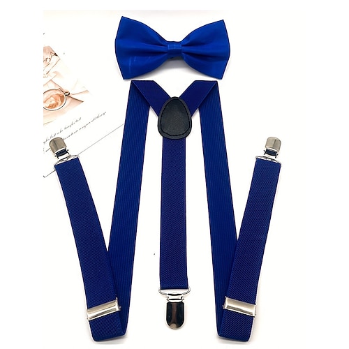 set di bretelle e papillon in poliestere da uomo, vari colori, perfetti per Natale e eventi formali