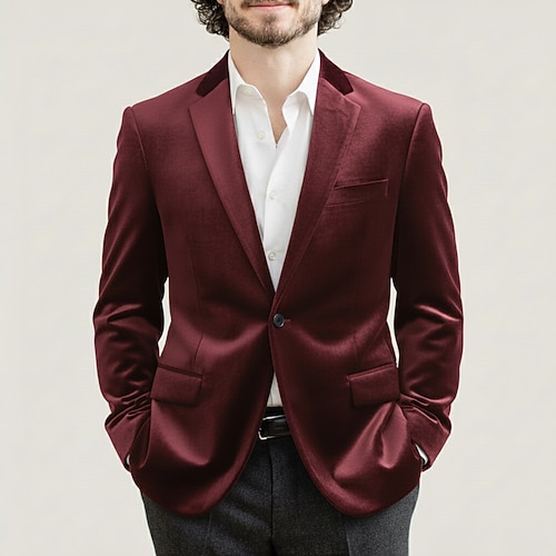 Per uomo Blazer di velluto Colletto ad incastro Moda Classico Casual Tinta unita Blazer di velluto Nero Borgogna Blu scuro Vestibilità su misura Monopetto Un Bottone
