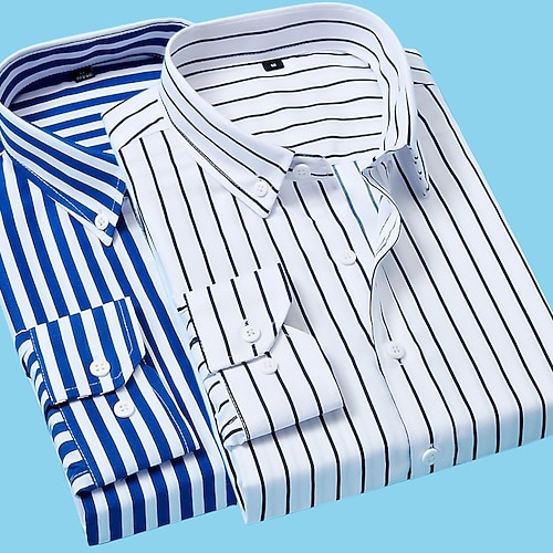 Per uomo Camicia Camicia elegante Camicia button-down Camicia a righe Camicia con Colletto Strisce verticali Lavoro Ufficio / Carriera BluBlu chiaro Bianco rosso Blu navy rosso Azzurro chiaro