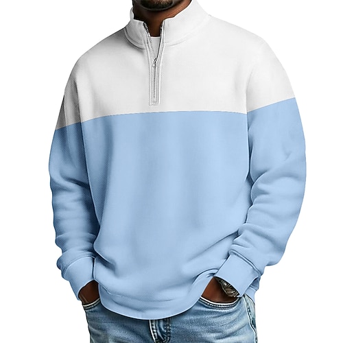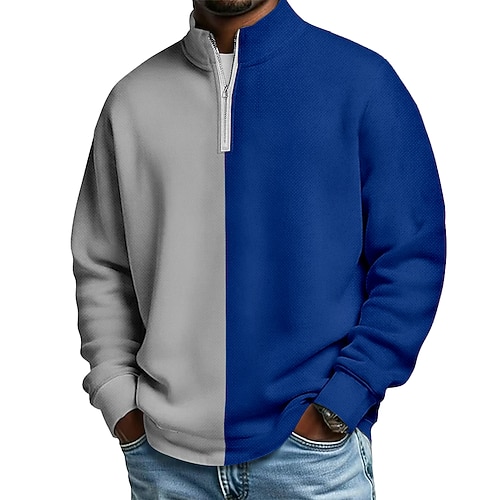 Per uomo Blocco di colori Polo con zip Manica Lunga Magliette polo Colletto alla coreana Casual Scuola Athleisure Ferie Abbigliamento quotidiano Stampa 3D Polo con cerniera a un quarto Primavera