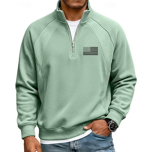 Per uomo Polo Polo con zip a un quarto Vacanza Streetwear Zip a un quarto Manica Lunga Moda Essenziale Bandiera degli Stati Uniti Patchwork Stampa Autunno Inverno Vestibilità su misura Blu Aalbicocca
