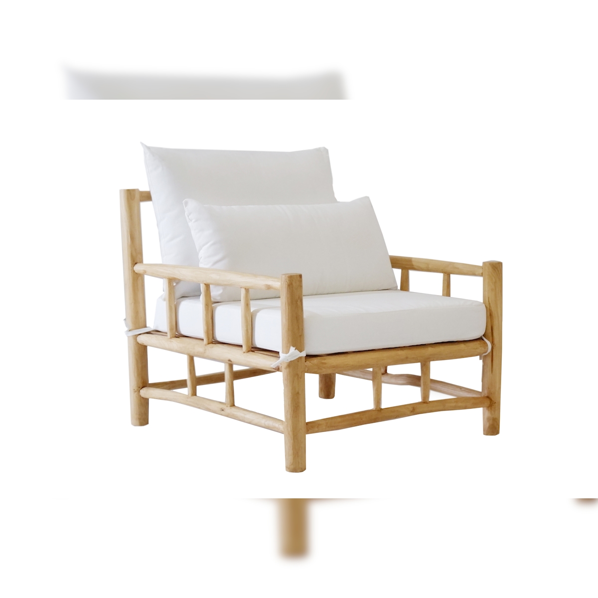 Möbilia Relax-Sessel | aus Teakholz | inkl. Kissen | natur – weiß | B 90 x T 90 x H 80 cm | 11020028 | Serie GARTEN